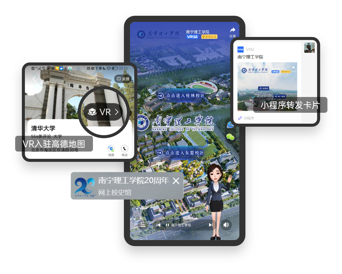 VR智慧校園VR/3D漫游+AI虛擬教師,全方位展示學校教學環(huán)境/辦學歷史/科目特色,給師生/家長更好的感官體驗,隨時隨地云參觀校園,全面提升學校形象和知名度。