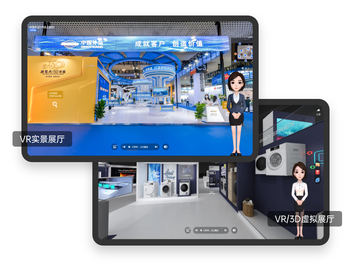 滿足線上辦展、參展、逛展需求VR/3D數(shù)字化還原展會實(shí)景空間或定制虛擬展廳/展館,嵌入多種互動熱點(diǎn);支持多場景流暢切換,多終端在線360°游覽,定制AI數(shù)字接待員導(dǎo)覽講解服務(wù)等。