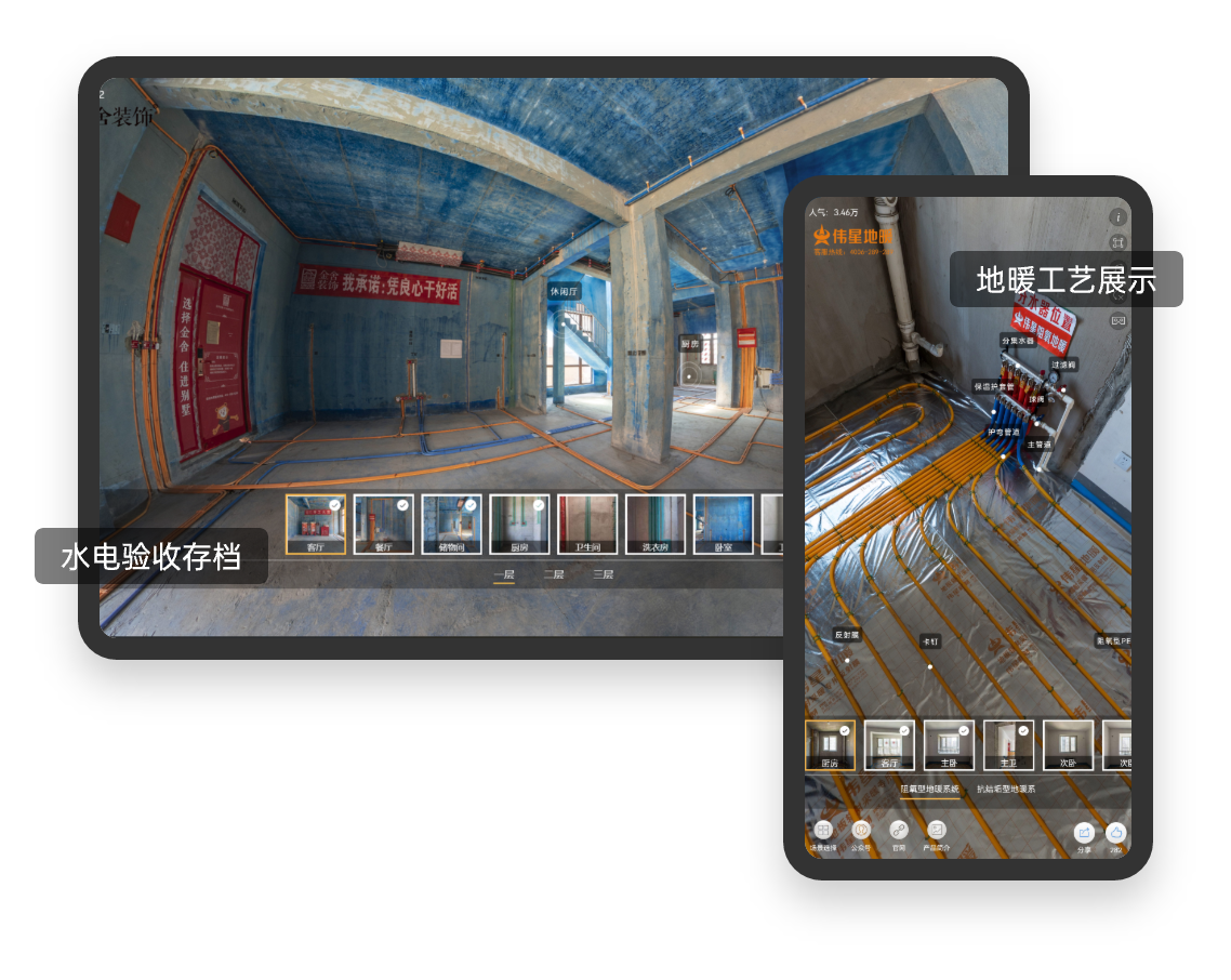 項(xiàng)目全場(chǎng)景VR/3D云觀摩VR/3D數(shù)字化互動(dòng)展示項(xiàng)目部全貌/工程進(jìn)度,可將項(xiàng)目特色亮點(diǎn)嵌入圖文/音視頻等多種漫游熱點(diǎn),滿足云觀摩交流、遠(yuǎn)程云評(píng)審的應(yīng)用場(chǎng)景需求,發(fā)揮優(yōu)質(zhì)精品工程宣傳優(yōu)勢(shì)。